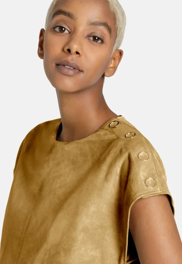 What Initially Looks Like A Skirt And Shorter Top Is Actually A Dress With An All-Round Tuck Just Above The Waist. With Wide Drop Shoulder Sleeves, Which Can Be Opened And Closed On The Left Side With Four Decorative Ring-Shaped Metal Press Studs. The Pockets Are Inconspicuously Integrated Into The Side Seams. A Long Zip At The Back Ensures It Is Easy To Put On And Take Off. The Dress Is Fully Lined With A Very High-Quality Silk-Blend Lining With Woven Logo Pattern And Has Definite Potential To Be Your Favourite.