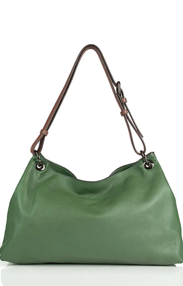 Hand-Made, Medium-Sized, Spacious Bag Crafted In Calfskin Nappa Featuring Decorative, Dark-Metal Anchor Fastening And Variable-Length Shoulder Strap In Contrasting Brown. The Bag Is Lined And Comes With A Pocket For A Mobile Phone, Pen Holders And An Extra Pocket With A Zip. The Tastefully Embossed Logo On The Finely Textured Leather Put The Finishing Touches To The Classic Style Of This Accessory.