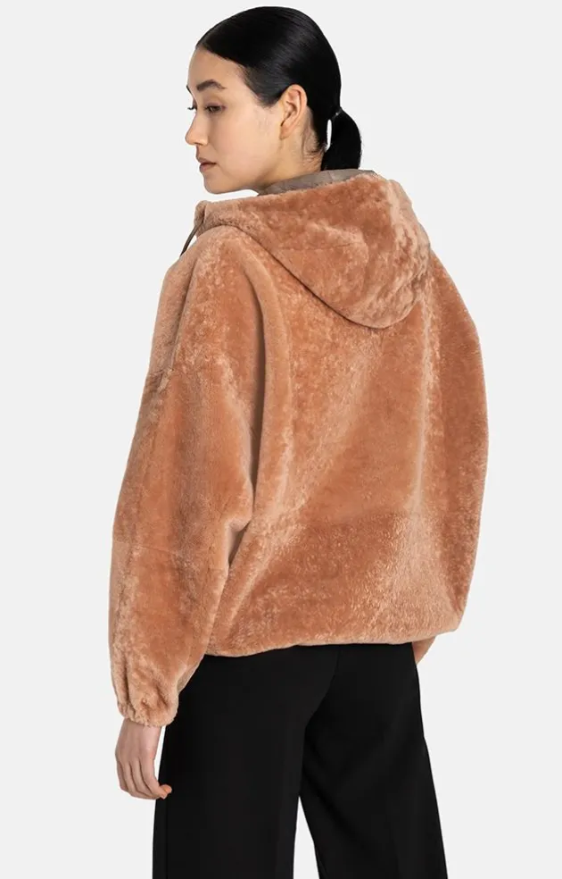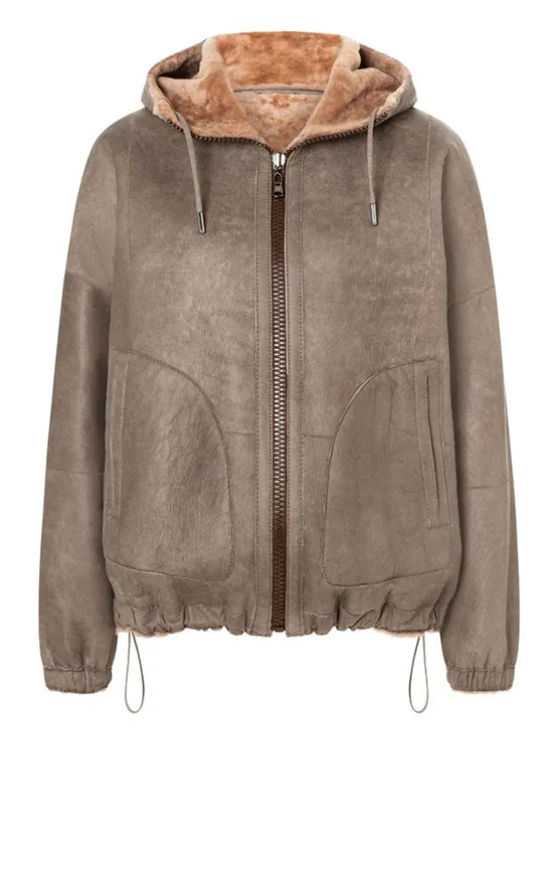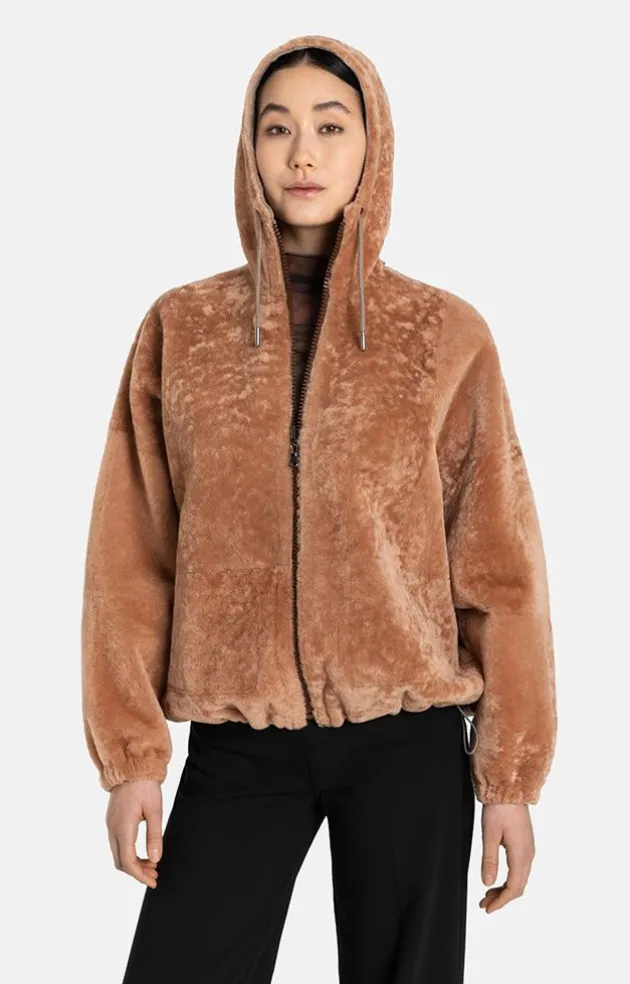 A Sporty Yet Elegant Blouson Jacket In A Slightly Oversized Fit. This Jacket Is Enhanced By A Fitted Hood And An Elastic Drawstring, Which Allows The Waistband To Be Adjusted. It Is Closed With A Metal Zip. Worn On The Fur Side, The Jacket Is Elegant While The Napped Side Can Be Used To Achieve A Sportier Look. This It-Piece Is Perfect For The Transition Into The Colder Season.