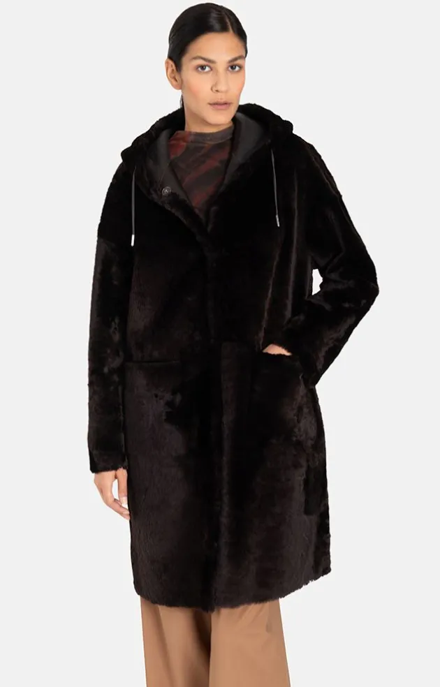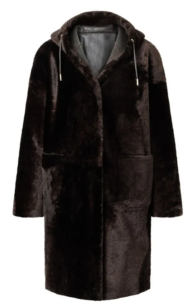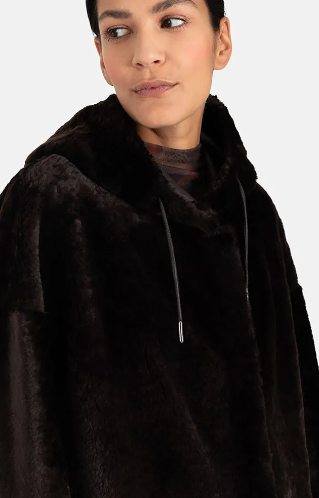 Sporty Parka Jacket In A Comfortable Oversized Fit Crafted In Soft, Dark-Brown Lambskin. Can Be Worn On Either Side: With An Ironed Wool Side And Intentionally Irregular Seam Pattern On The Napped Leather Side In The Same Colour. Each Jacket Is Absolutely Unique. The Cut-On Hood With A Sporty Leather Cord, Discreet Press Studs Sewn On By Hand And Large Patch Pockets All Go To Underlining The Casual Character. With The Fleece Worn On The Outside, The Jacket Creates A Very Stylish Look, While With The Leather Worn On The Outside, It Conveys A More Sporty Impression. A Cool Statement Piece.