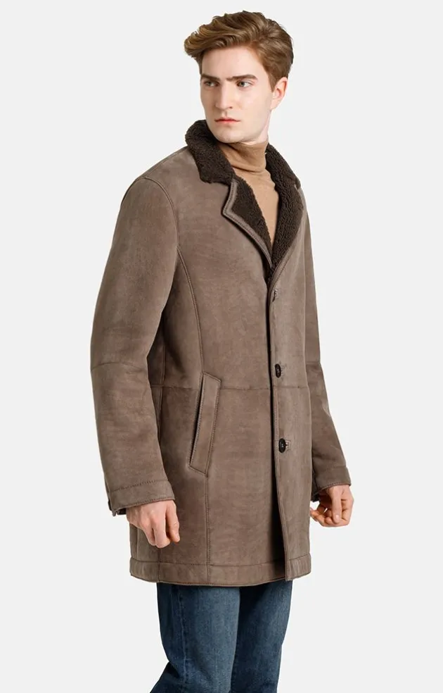 With Its Length Of 90Cm, This Short Coat Is An Absolute Classic In Any Wardrobe. Looks Great Worn Over A Sports Jacket Or Suit But Also Casual With A Woollen Pullover. Shown Here In A Wonderful Brown Tone With The Wool Side In The Same Colour. The Front Edges Feature A Leather Band In A Matching Colour Inside, Setting A Captivating Accent On The Lapel. The Lapel Collar Can Also Be Fully Fastened Up. Seam Pattern With Slim Silhouette. High-Quality Piped Buttonholes And Comfortable Side Pockets. Needless To Say: Genuine Horn Buttons. With Short Slit Cuffs Which Can Be Closed And A Back Vent. All In All, A Dream Piece.
