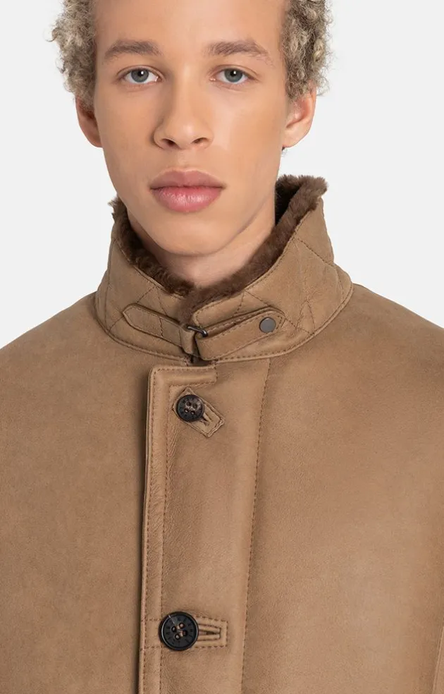 An Arresting Feature Of This Functional Jacket Crafted Out Of Lambskin With A Napped Surface And Wool Side Is The Double Fastening On The Front. It Can Be Fastened Up High With A Two-Way Zip. The Flap Over It With Genuine Horn Buttons Sewn On By Hand And High-Quality Piped Buttonholes Covers The Zip Completely When Closed. The Collar Can Be Worn Either As A Stand-Up Collar Or A Small Lapel Collar. The Leather Band On The Front Edge Lends The Lapel A Stylish Contour. With Short Slits On The Sleeve Ends And A Back Vent. A Special Finishing Technique Is Used To Make The Tips Of The Wool Slightly Brighter, Thereby Lending The Jacket A Sporty Look. The Symbiosis Of A Sporty Look And Elegance.