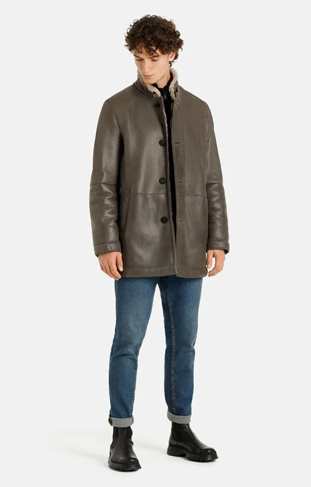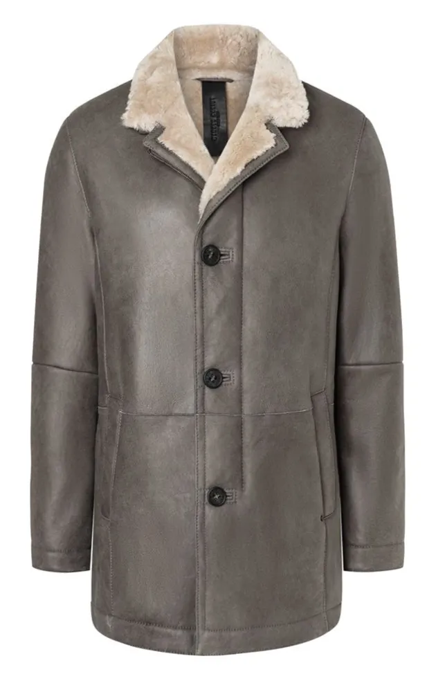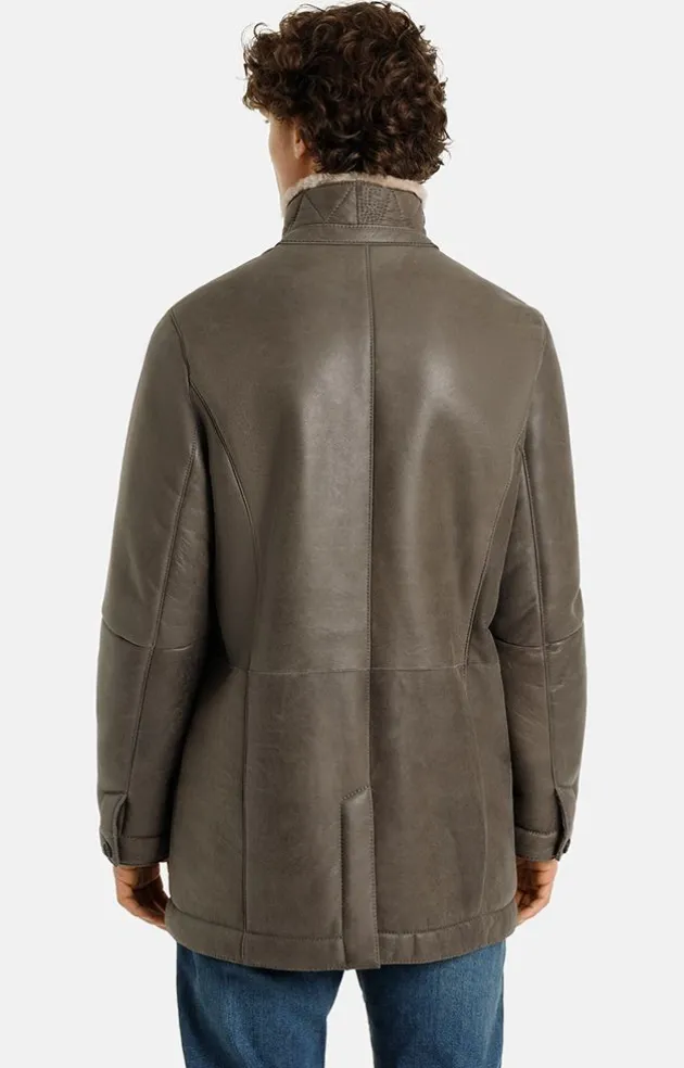An Arresting Feature Of This Functional Jacket Crafted In Granite-Coloured Lambskin With A Napped Surface And Light-Coloured Wool Side Is The Double Fastening On The Front. It Can Be Fastened Up High With A Two-Way Zip. The Flap Over It With Genuine Horn Buttons Sewn On By Hand And High-Quality Piped Buttonholes Covers The Zip Completely When Closed. The Collar Can Be Worn Either As A Stand-Up Collar Or A Small Lapel Collar. The Leather Band On The Front Edge Lends The Lapel A Stylish Contour. With Short Slits On The Sleeve Ends And A Back Vent. A Special Finishing Technique Is Used To Make The Tips Of The Wool Slightly Brighter, Thereby Lending The Jacket A Sporty Look. The Symbiosis Of A Sporty Look And Elegance.