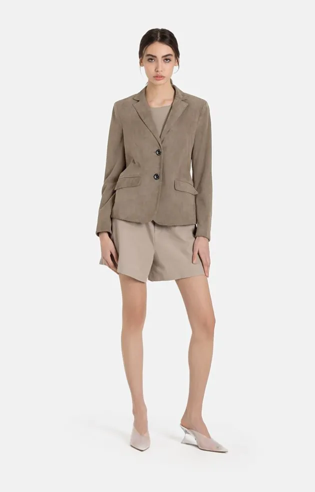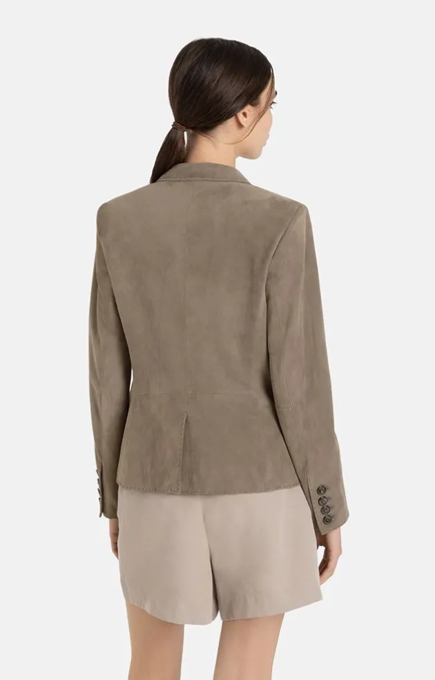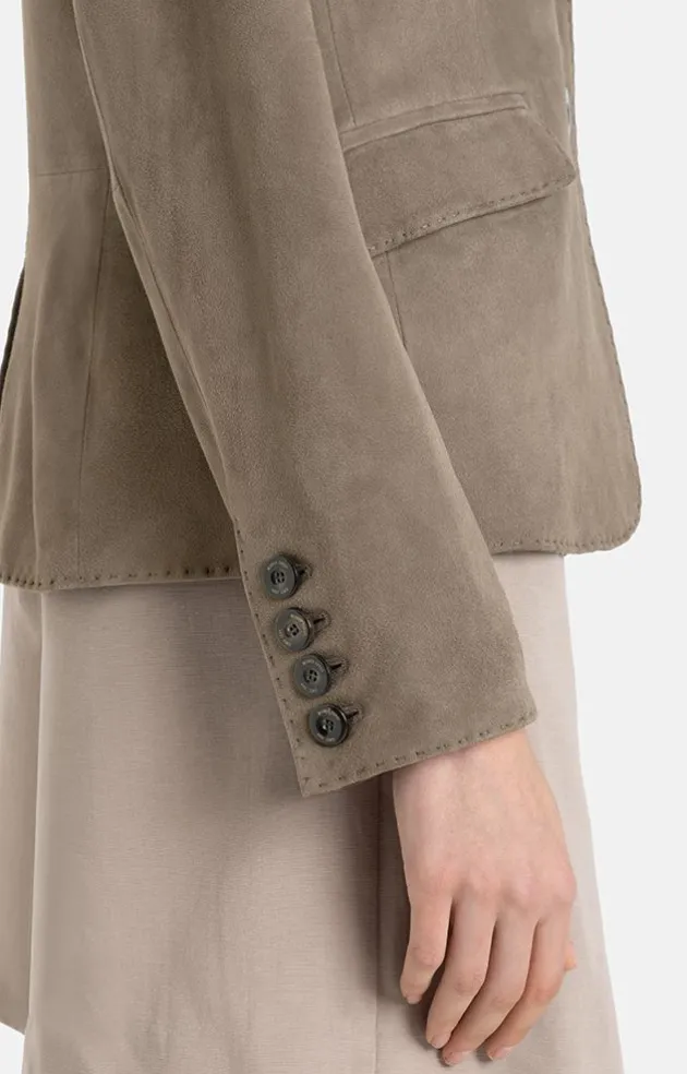 Classic Blazer In The Finest Velvety Goat Suede That Has Great Potential To Become A Favourite Piece In Your Wardrobe. The Bodice Is Slim And Slightly Waisted, Finished All Around In A Hand-Stitched Look. The Horizontal Flaps Of The Pockets Are Designed So That You Can Also “Tuck” Them Into The Pockets. The Blazer Is Fastened With Signature Buttons Made Of Genuine Horn With Logo Engraving. The Sleeves Have Real Buttonholes With A Smaller Version Of The Elegant Buttons. This Means They Can Be Worn Open Or Rolled Up. A Luxurious Lining Made Of 100% Cupro With A Woven Logo Pattern Completes The Look. Elegant Blazer For Business And Everyday Wear.