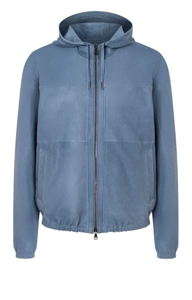 This Jacket Will Impress You With Its Extreme Lightness And Casual Style. It Is Made In A Perforated, High-Quality Goat Suede That Is Matt Napped. The Hood Is Truncated And Features A Leather Cord With Metal Ends. The Jacket Fastens With A Two-Way Metal Zip. It Features Slightly Gathered Detailing On The Sleeves Thanks To An Integrated, Soft Elastic Band. The Pocket Welts And The Front Edge Are Made Of Unperforated Velour And Give Contour. As Do The Longitudinal Seams With A Zig-Zag Stitch. Of Course, Two Inside Pockets Are A Must Here, Too. A Perfect Lightweight For Indoor And Outdoor Wear.