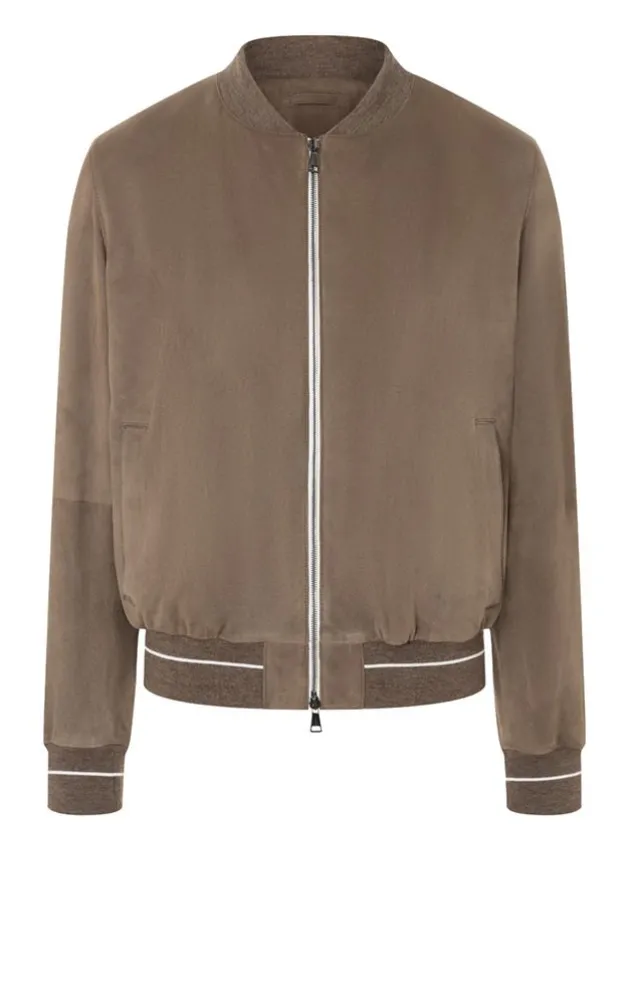 This Blouson Combines The Classic College Style With Fine Details And A Clean Design. The Knit With A Graphic Stripe In A Contrasting Colour On The Waistband And Sleeves Is A Visual Highlight. Crafted In The Finest, Soft Goat Suede And A High-Quality Silk Blend Lining With A Woven Logo Pattern, This Style Is An Update For Any Wardrobe.