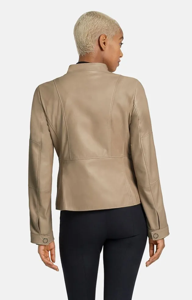 This Shorter, Slightly Fitted Jacket In The Finest Lambskin Nappa Plays With Biker Details. The Emphasis Is On The Two-Way Metal Zip Along The Front Edge And On The Almost Horizontal Zip Pockets. This Is Contrasted By The Small Stand-Up Collar In Sixties Look And The Cuffs That Are Closed With Stylish Ring-Shaped Metal Press Studs. A Perfect Fusion Of Style And Sportiness.
