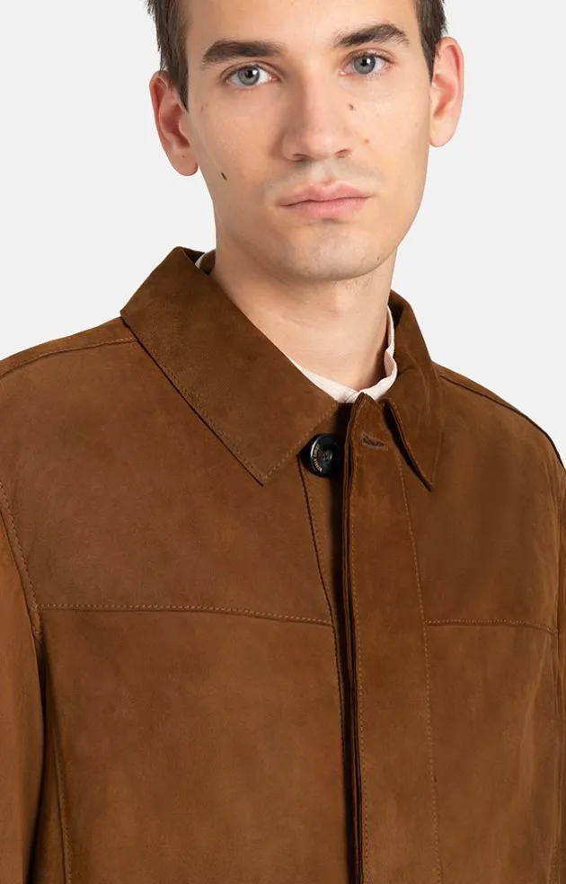 A Casual Shirt Jacket Made From Lightweight, Unlined Goat Suede. The Straight Cut And Concealed Button Placket With Hand-Sewn Real Horn Buttons Create A Casual Look. The Cuffs Can Be Opened And Comfortably Rolled Up. The Side Pockets Are Discreetly Integrated Into The Cut. This Unlined Overshirt Is The Perfect Companion For Indoors And Outdoors.
