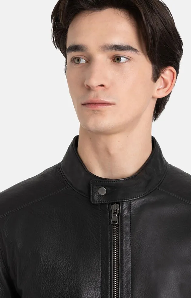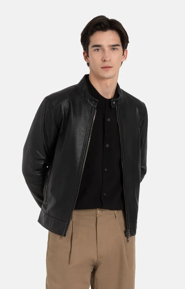 Black Lamb Nappa Lends This Blouson A Rugged Manly Look And Accentuates The Cool Biker Details, Such As The Stand-Up Collar And The Reinforced Shoulders. The Two-Way, Gun-Metal Zip, Little Metal Studs On The Collar And Cuffs Put The Finishing Touches To The Sporty, Rustic Style. A Biker Made For Real Men.