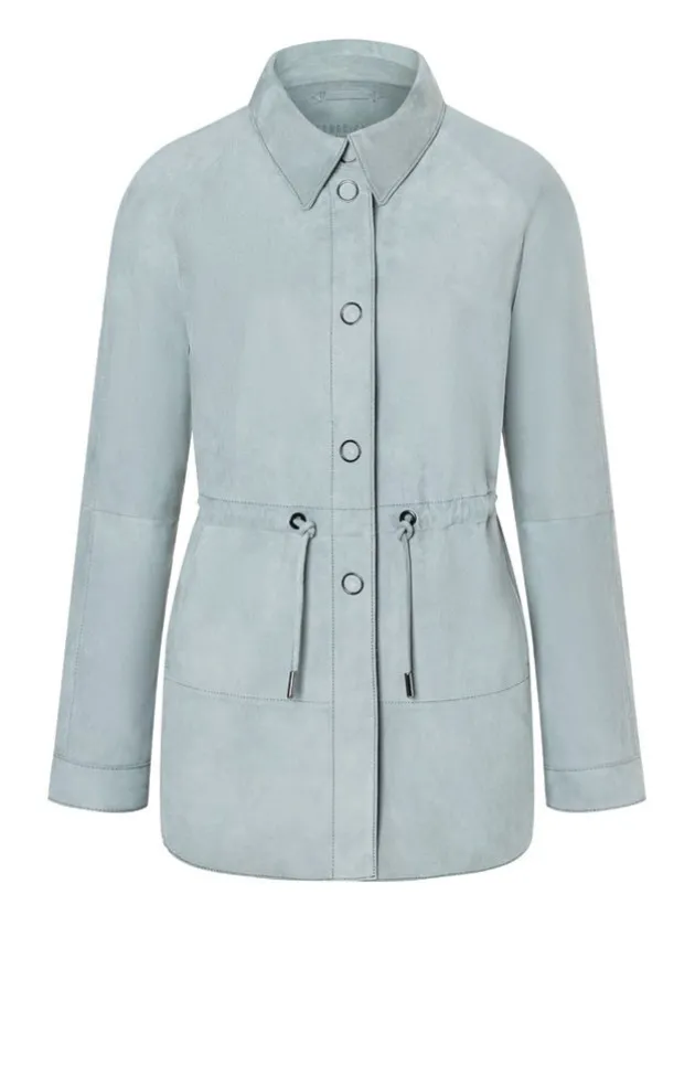 Light Jacket In A New Interpretation Of The Shirt Style Crafted From The Finest, Unlined Goatskin Suede. It Can Be Fastened Up High With The Very High-Quality, Ring-Shaped Metal Studs. The Drawstring – A Leather Cord With Metal Ends – Makes It A Simple Matter To Adjust The Width At The Waist. The Pockets Are Discreetly Integrated, While The Sleeves Come With Small Cuffs And Can Be Rolled Up Like A Shirt. The Symbiosis Of A Sporty Design And Elegant Metal Details. – 100% Goatskin Suede – Unlined – Metal Press Studs – Leather Cord Drawstring – Item No: 11 2863 Zn 434 – Back Length: 70 Cm